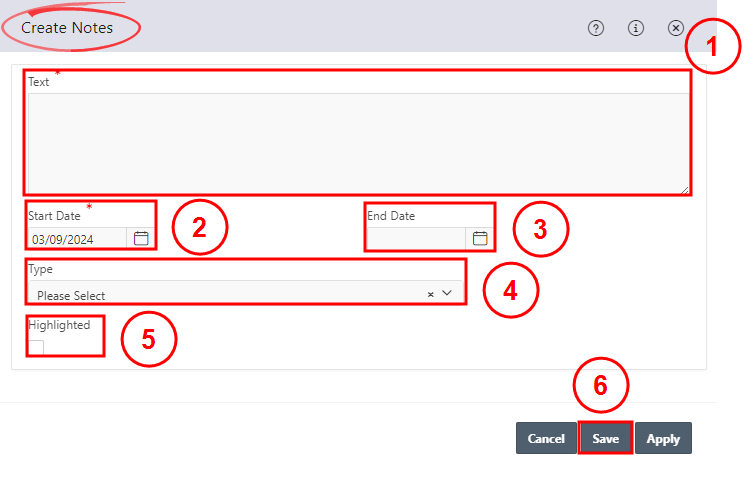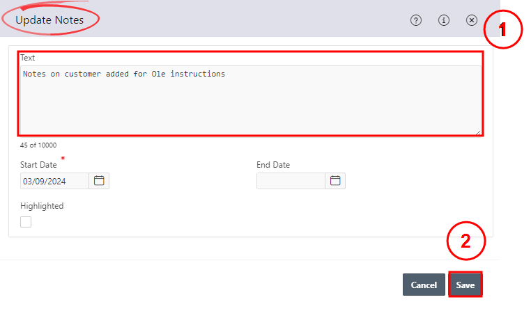 - tick the Highlighted box, if the note should be displayed at the top of the list.